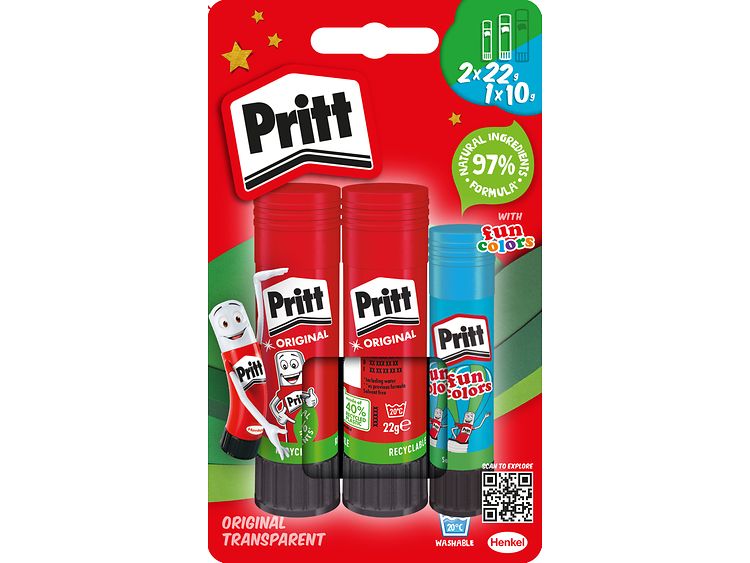 Since their invention in 1969, Pritt glue sticks have enabled countless children around the world to express their creativity and improve their motoric skills by crafting. Today’s generation of Pritt sticks feature 97 percent natural ingredients (including water) and up to 65 percent recycled plastic in the stick, without any restrictions in performance. It offers a strong initial tack, easy repositioning, and the best crafting results across the category.